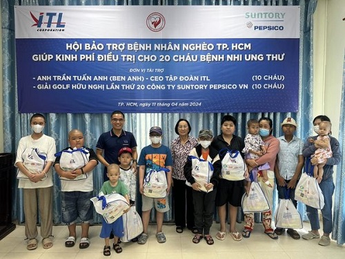 Ngày 11/04/2024, tại Trụ sở Hội Bảo Trợ Bệnh Nhân Nghèo TP. HCM, “Lễ trao kinh phí điều trị cho 20 cháu bệnh nhi ung thư do anh Trần Tuấn Anh (Ben Anh) – Tổng giám đốc công ty cổ phần tập đoàn ITL và Giải Golf hữu nghị lần thứ 20 do công ty Suntory PepsiCo Việt Nam tài trợ” đã diễn ra trong không khí ấm cúng và đầy yêu thương. Anh Trần Tuấn Anh – Tổng giám đốc Công ty cổ phần tập đoàn ITL đã đến tham dự chương trình, thăm và trao kinh phí điều trị cho các bệnh nhi bị ung thư đang điều trị tại Bệnh viện ung bướu TP. HCM. Mỗi bé được nhận hỗ trợ chi phí điều trị là 20 triệu đồng (trong đó, tiền mặt là 19,5 triệu đồng và một phần quà trị giá 500 ngàn đồng).