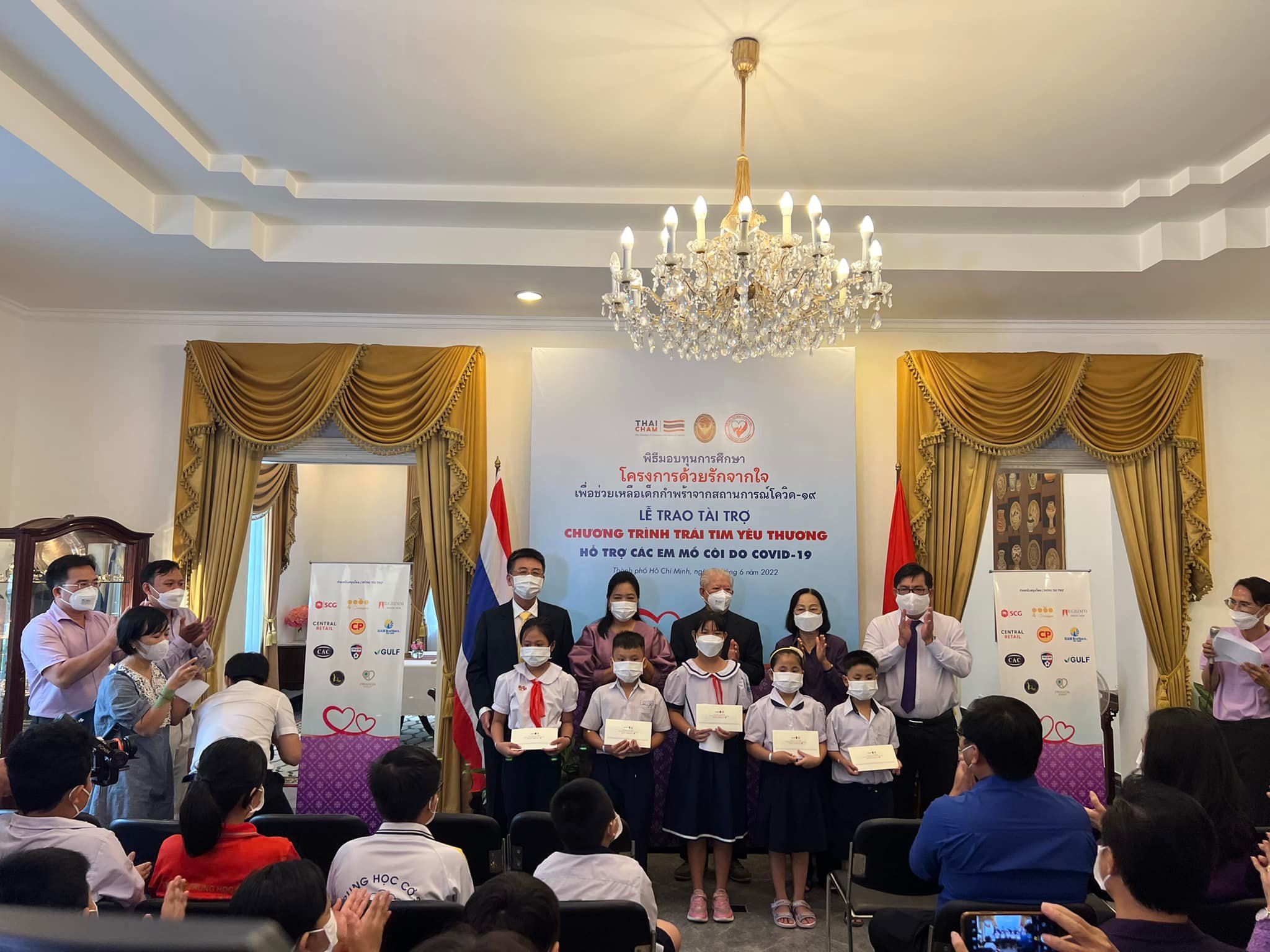 TRAO 140 HỌC BỔNG CHO CÁC CHÁU MỒ CÔI DO COVID-19 TỪ NGUỒN TÀI TRỢ CỦA TỔNG LÃNH SỰ VÀ CỘNG ĐỒNG THÁI TẠI TP. HCM