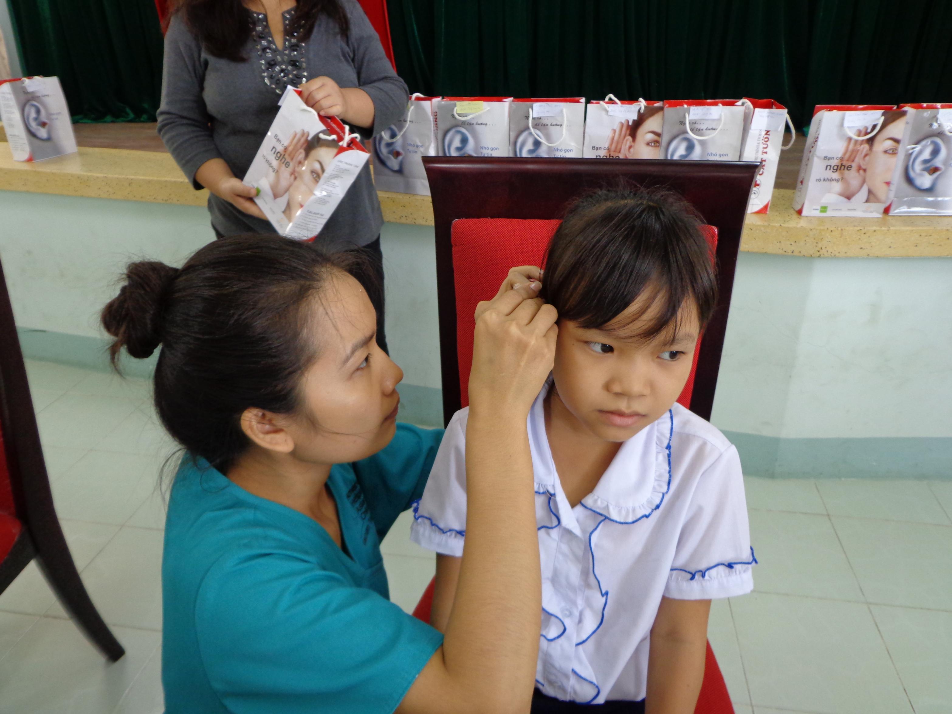 Gắn máy trợ thính cho học sinh khiếm thinh