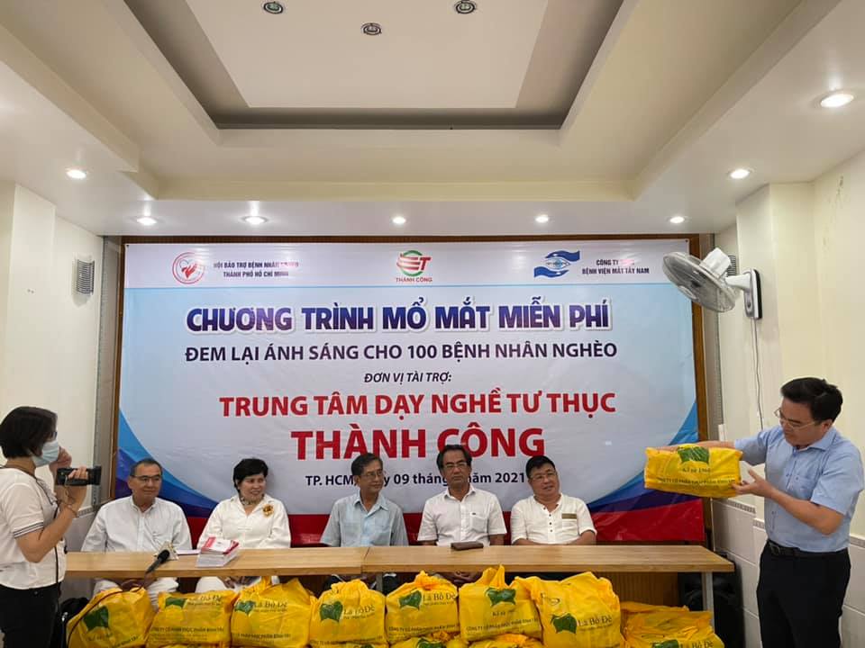 Tất cả chi phí phẫu thuật mắt và quà tặng do Trung tâm Dạy nghề Tư thục Thành Công và Công ty Cổ phần Thực phẩm Bình Tây tài trợ.